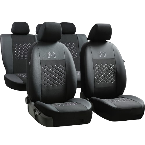 8006- Καλύμματα αυτοκινήτου 5 θεσεων. PREMIUM δερματινη μαυρο-γκρί