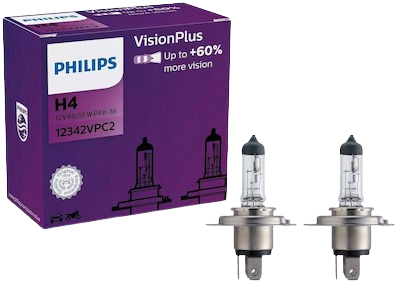 10.012- Philips Vision Plus H4 φωτα 2τεμ 60W, 3200 K, 1650 lm