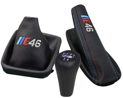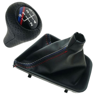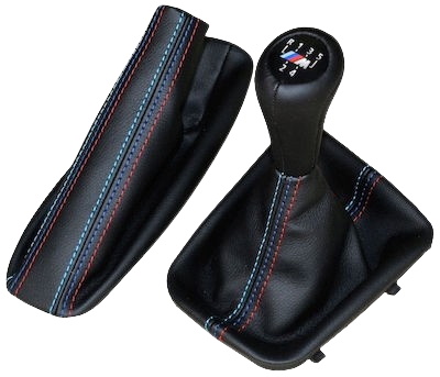 6049- Πόμολο 5 Ταχυτήτων με Φυσούνα Λεβιέ, Φυσουνα χειροφρενου – Δερματίνη για BMW E46 Μαύρο M Power